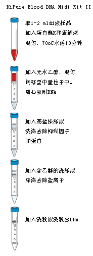 | 主要功能 | 从0.2-2ml血液及相关体液等样品中直接提取总DNA(含蛋白酶) |