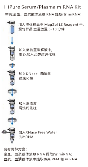 双方案提取,0.25ml血液、细胞悬液或0.3-0.9ml无细胞体液提取RNA和miRNA