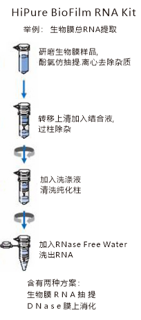 HiPure BioFilm RNA Kit适合于从生物膜样品中提取高纯度总RNA。在自然界中,细菌和真菌等微生物会粘附在物质(岩石,支持物)的表面,形成生物膜。这些生物膜包括复杂的微生物种群,形成了极小的生态系统。生物膜样品中含富多糖类物质或色素,是RNA提取的难点。试剂盒结合高效珠磨法和热酚法处理技术,可高效地从各种生物膜样品中提取高纯度的RNA。得到的RNA可直接用于RT-PCR、Northern blot、poly-A+纯化、核酸保护和体外翻译等实验。